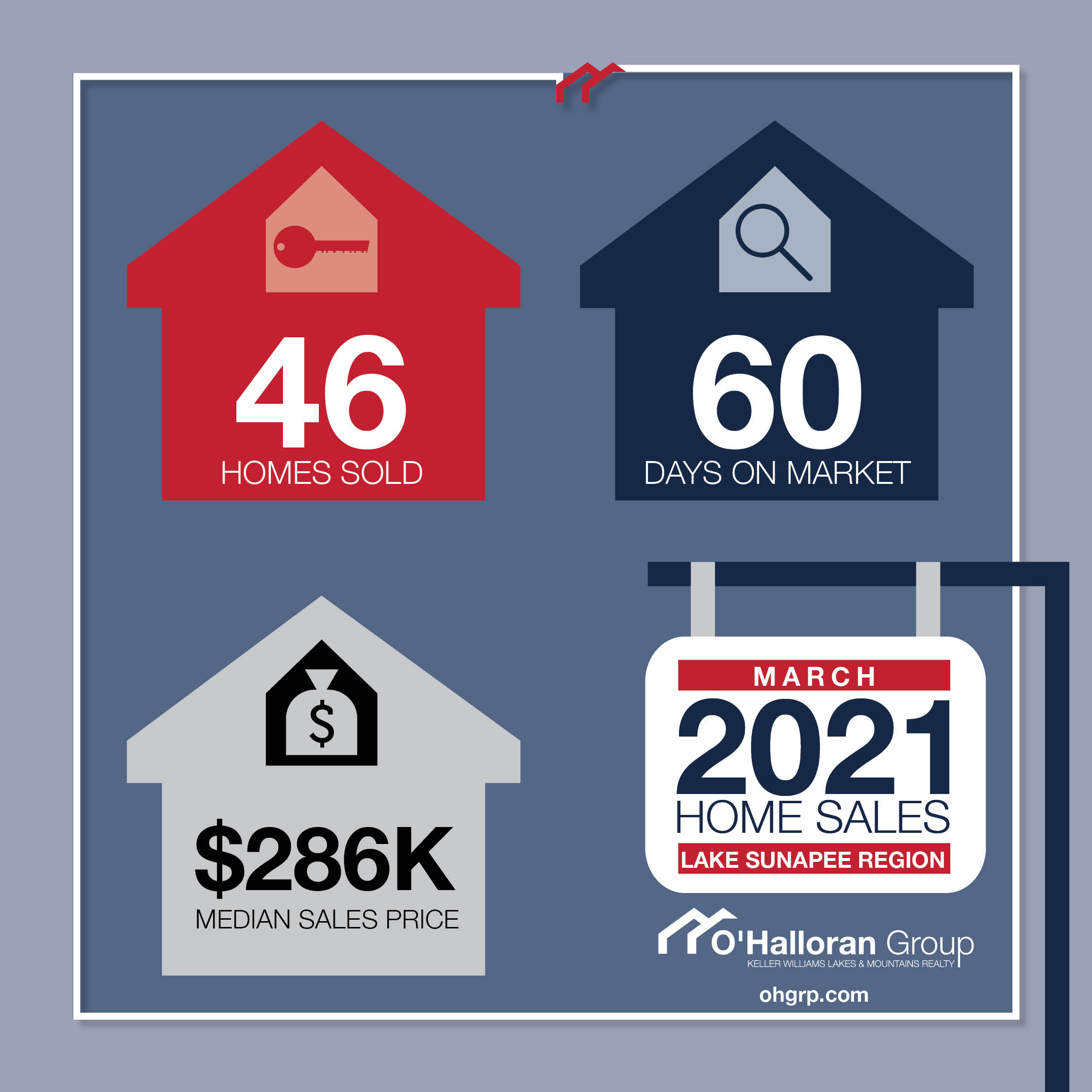 Closing out the first quarter of 2021 Sunapee Region real estate sales, the median sale price continues to exceed previous years, but number of homes sold is lower than past years. This month there was a wide range of sales in Newbury, with a total of 9 homes sold ranging from $75,000-$1,115,000. Read more about March 2021 Home Sales.